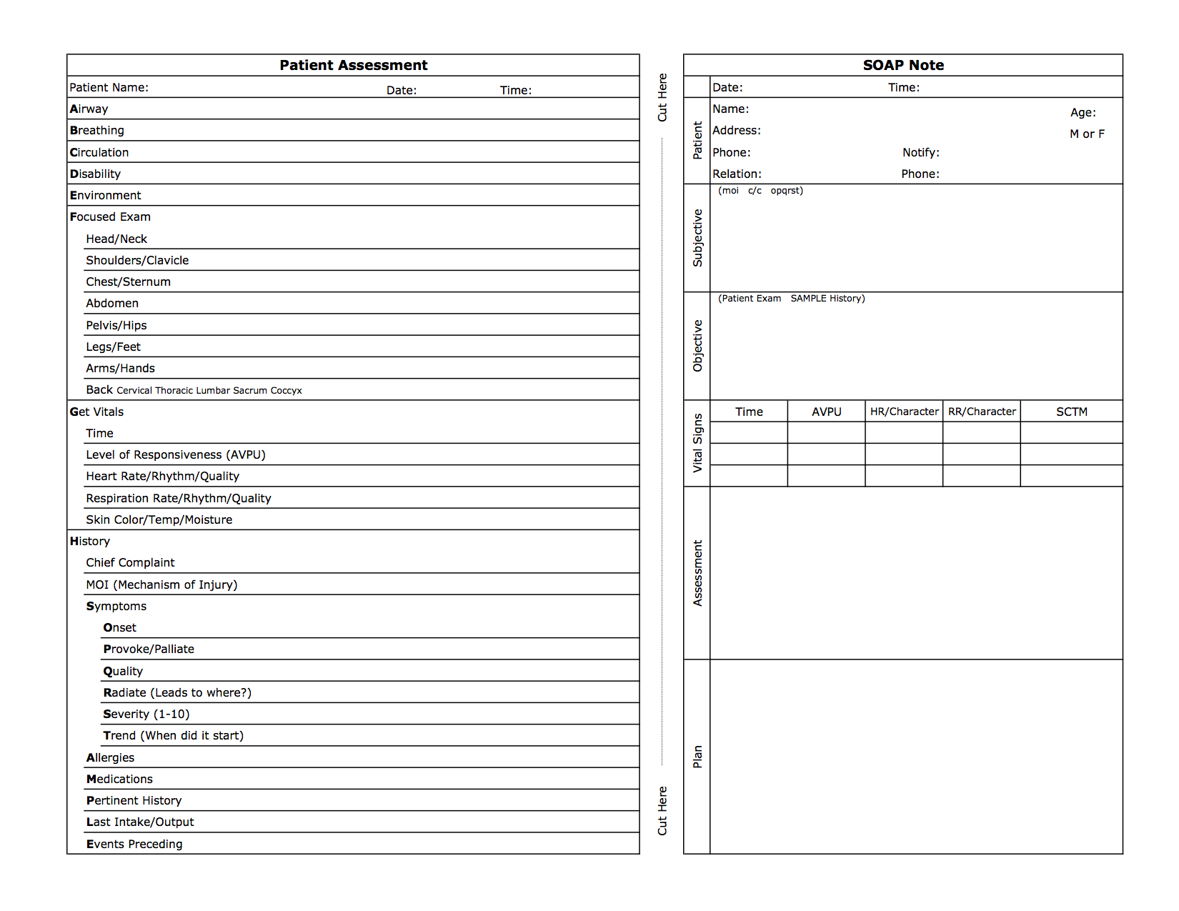 If you use the iPad or any kind or Android, the Wilderness Medical Institute has an excellent app for documenting using the SOAP methodology.