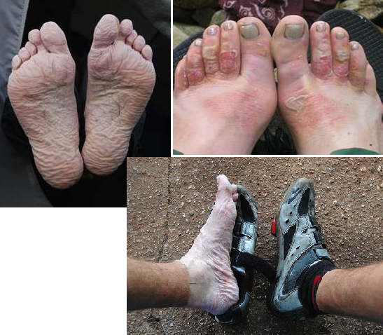 This injury is frostbite’s evil cousin, and as stated earlier, it is a cold injury to the tissue that occurs in wet environments at temperatures above freezing. This injury is also known as “Trenchfoot” named after the condition soldiers would find their feet in after days wearing boots in cold water-filled, muddy trenches.